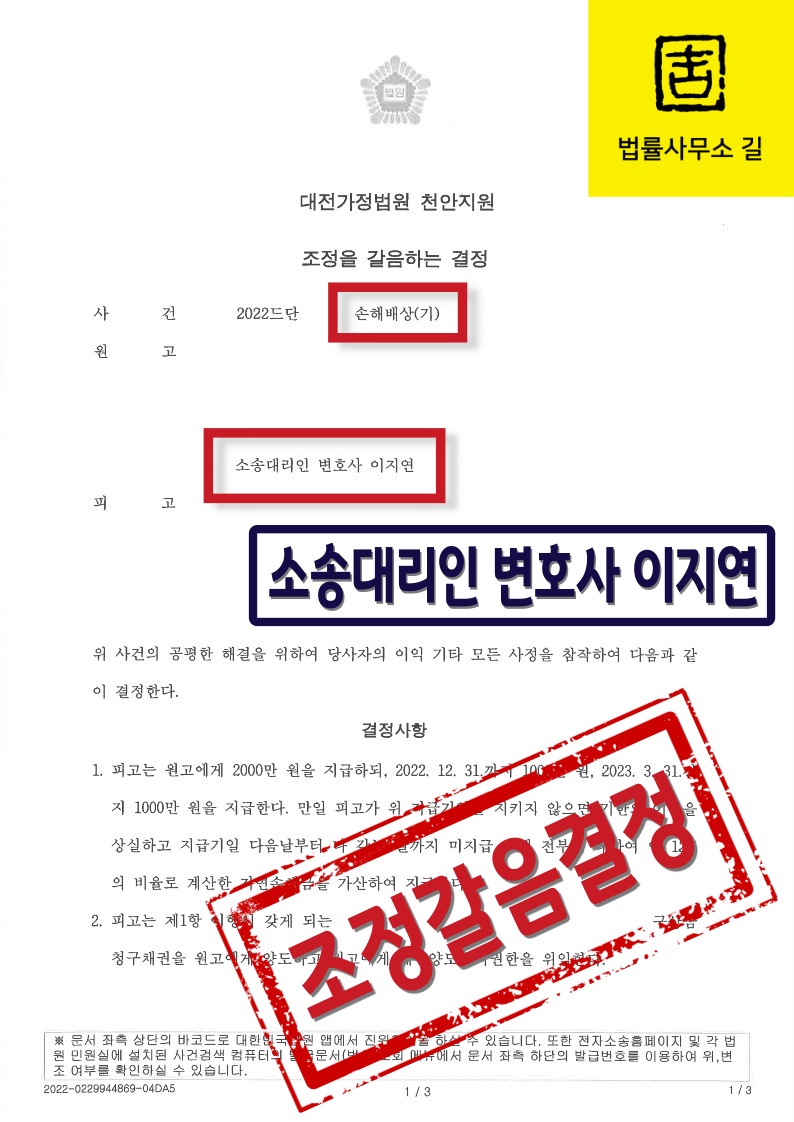 Çǰí´Â ºÎÀÎÇÒ ¼ö ¾ø´Â Áõ°Å ´öºÐ¿¡ »ó°£»ç½ÇÀ» ÀÎÁ¤Çϰí À§ÀÚ·á·Î 2,000¸¸¿øÀ» Áö±ÞÇÏ´Â Á¶Á¤°¥À½°áÁ¤À» ¹Þ°Ô µÇ¾ú½À´Ï´Ù.