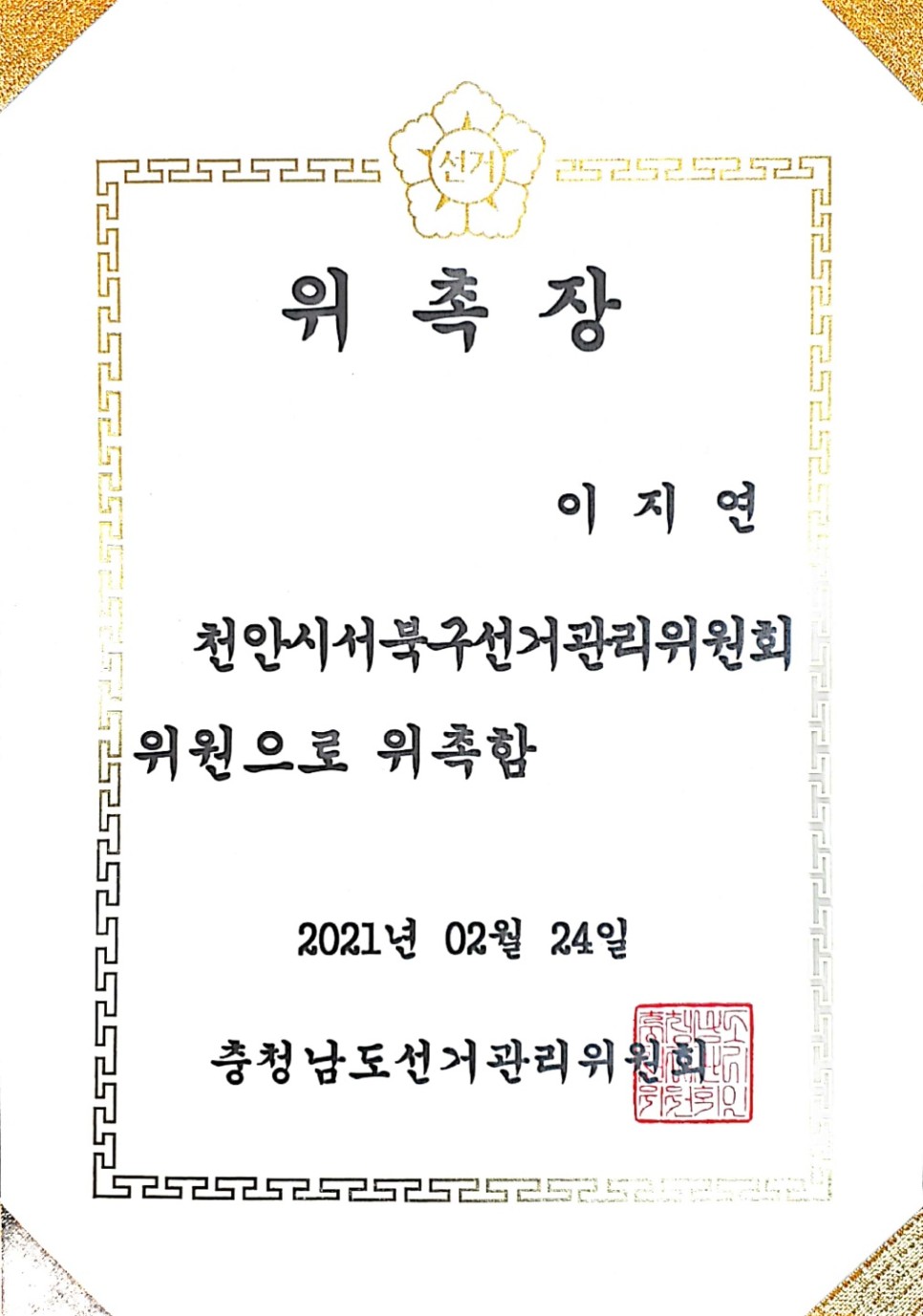 õ¾Èº¯È£»ç ¹ý·ü»ç¹«¼Ò ±æ(ÑÎ) ÀÌÁö¿¬º¯È£»ç´Â 2021. 2. 24. ÀڷΠõ¾È½Ã ¼­ºÏ±¸ ¼±°Å°ü¸®À§¿øÈ¸ À§¿øÀ¸·Î À§Ã˵Ǿú½À´Ï´Ù.