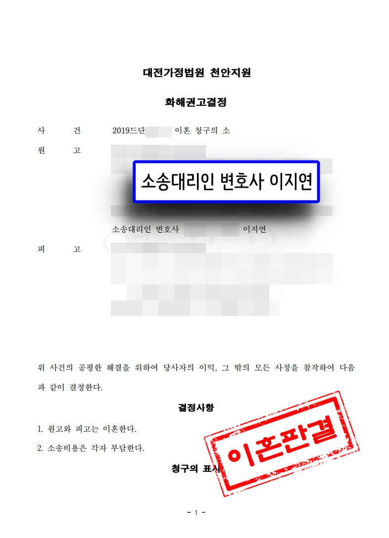 ÀÌ¿¡ õ¾È ¹ý·ü»ç¹«¼Ò ±æ ÀÌÁö¿¬ º¯È£»ç´Â ¿ø°íÀÇ ¼ÒÀåÀÌ ÇÇ°í¿¡°Ô µµ´ÞµÈ ÀÌÈÄ ÇÇ°í¿¡°Ô Á÷Á¢ ¿¬¶ôÀ» ÃëÇÏ¿©, ÀÌÈ¥ û±¸¿¡ ÀÀÇÏÁö ¾ÊÀ» °æ¿ì ÇǰíÀÇ µµ¹ÚÀ¸·Î ÀÎÇÑ Ã¤¹«±îÁö ºÐÇÒÇÏ´Â °ÍÀ¸·Î Àç»êºÐÇÒÀ» û±¸Çϰڴٰí ÇÏ¸é¼ ÀÌÈ¥¿¡ ÀÀÇϵµ·Ï Á÷Á¢ ¼³µæÇÏ¿´½À´Ï´Ù.