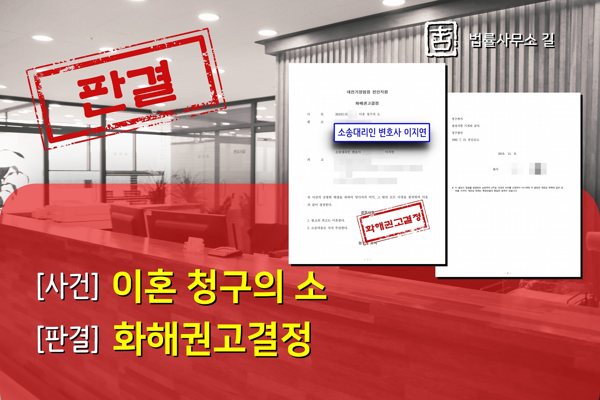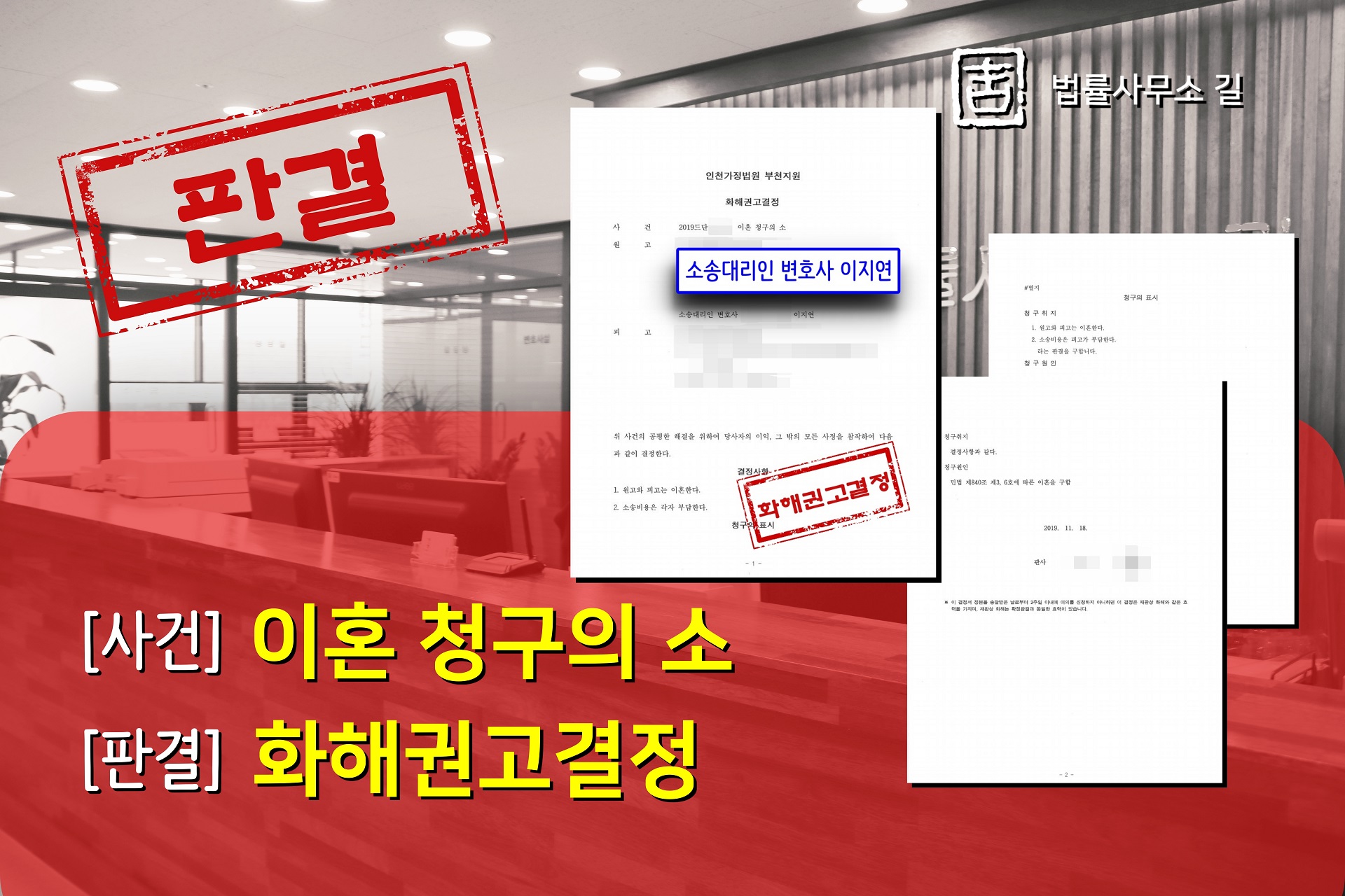 ÀÌ¿¡ ÀÌÁö¿¬º¯È£»ç´Â ÈÇØ±Ç°í°áÁ¤À» ¹Þ¾Æ ÀÌÈ¥¿¡ À̸¦ ¼ö ÀÖµµ·Ï Á¶·ÂÇÏ¿´½À´Ï´Ù.