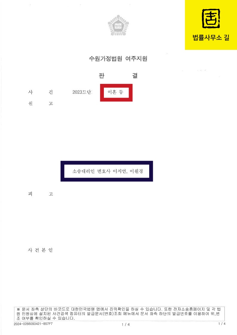 ¿ÀÈ÷·Á ±×·± »óȲÀϼö·Ï ¼ÒÀå¿¡ Àû±ØÀûÀÎ ´äº¯À» ÇØ¾ß ÀÌÈ¥À» ±â°¢½Ãų ¼ö ÀÖ°í, ¼Ò¼ÛÀ» ¹æÄ¡ÇÏ¸é ¿ø°íÀÇ Ã»±¸´ë·Î ÀοëµÇ´Â ÆÇ°áÀ» ¼±°í¹ÞÀ» ¼ö Àֱ⿡ ÀÌÈ¥ ¼ÒÀåÀ» ¹Þ¾Ò´Ù¸é ¹Ýµå½Ã º¯È£»ç »ó´ãÀ» ¹Þ´Â °ÍÀ» ±ÇÇØµå¸³´Ï´Ù.