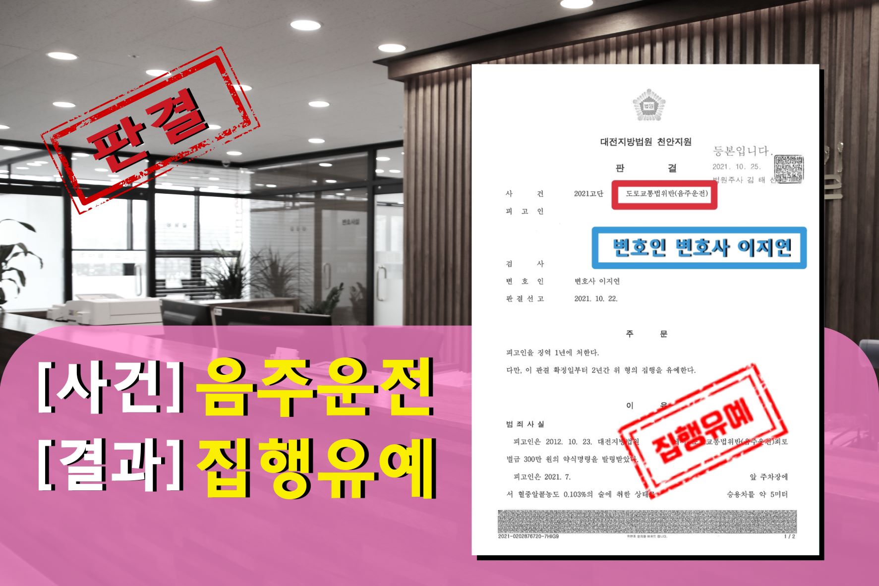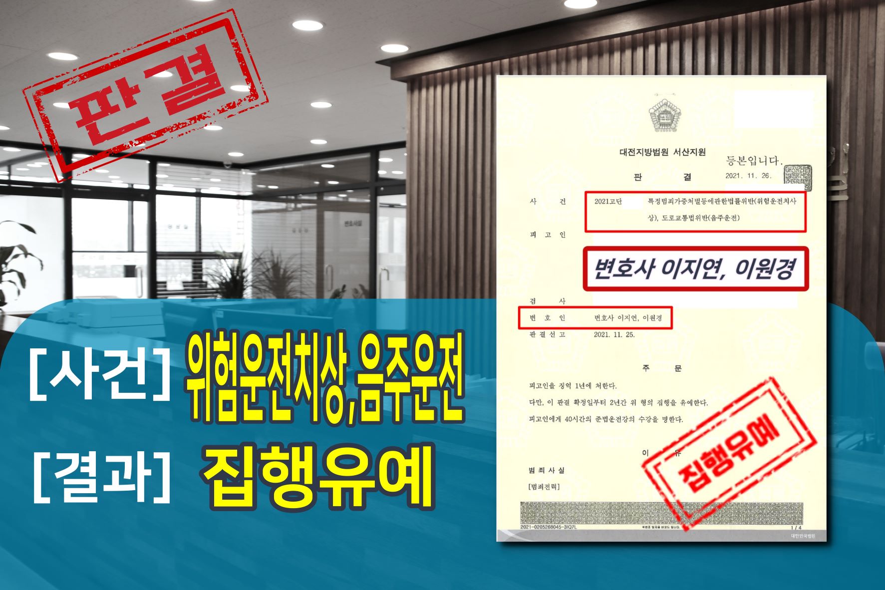 À½ÁÖ¿îÀü ÁýÇàÀ¯¿¹ ¼º°ø»ç..