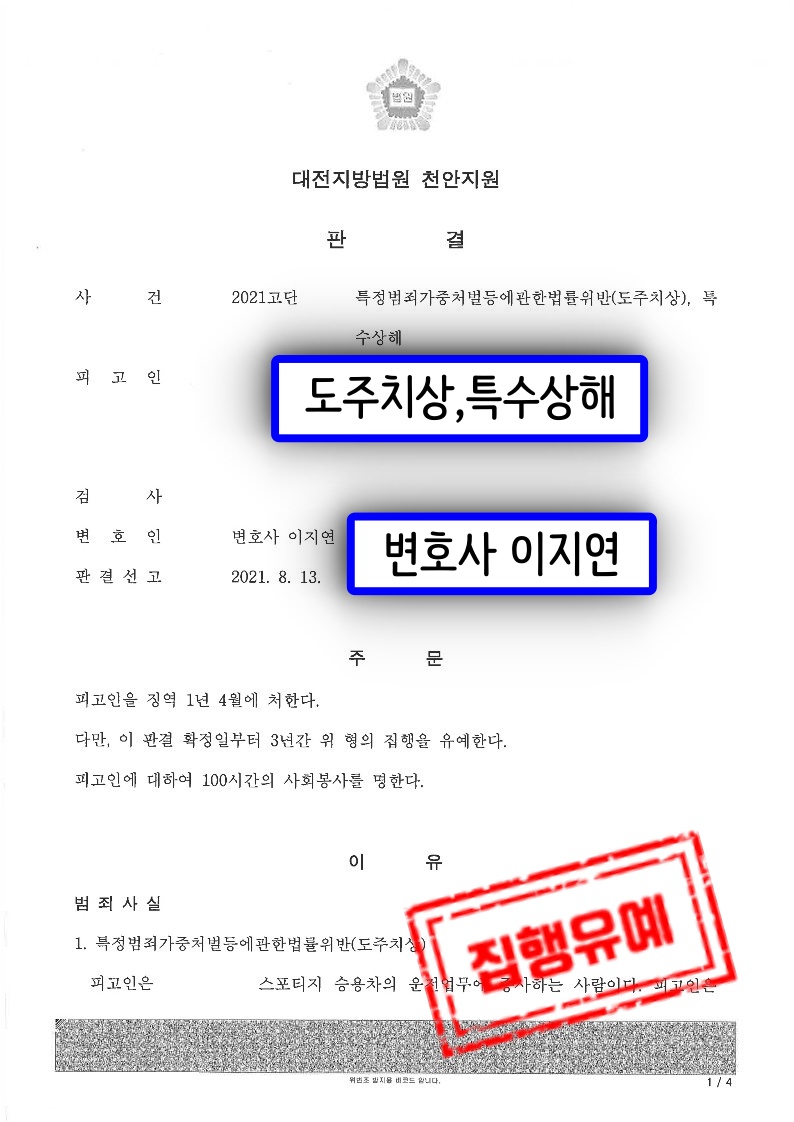ÀÇ·ÚÀÎÀº ¾ß°£¿¡ ÀϹæÅëÇ౸°£¿¡¼ ¿îÀüÀ» ÇÏ´Ù ¾Õ¿¡ Á¤Â÷ÇÏ´ø Â÷·®°ú Á¢ÃË»ç°í°¡ ¹ß»ýÇÏ¿´½À´Ï´Ù. ¿©·¯ Â÷·ÊÀÇ À½ÁÖ °æ·ÂÀÌ ÀÖ¾ú´ø ÀÇ·ÚÀÎÀº À̹ø¿¡ Àû¹ßµÇ¸é ¾ÈµÈ´Ù´Â »ý°¢¿¡ ÇöÀåÀ» ÀÌÅ»ÇÏ¿© µµÁÖ¸¦ ½ÃµµÇÏ¿´½À´Ï´Ù. ±×·¯³ª ÇÇÇØ Â÷·®ÀÇ ¿îÀüÀÚ°¡ ³»·Á ÀÇ·ÚÀÎÀ» Ãß°ÝÇÏ¿´°í ±× °úÁ¤¿¡¼ ÇÇÇØÀÚ´Â ¶ÇÇѹø ÀÇ·ÚÀÎÀÇ Â÷¿¡ ºÎµúÈ÷´Â »ç°í°¡ ¹ß»ýÇÏ¿´°Ô µÇ¾î ÀÇ·ÚÀÎÀº µµÃßÁö»ó ¹× Ư¼ö»óÇØ ÇøÀÇ·Î À԰ǵǾî Á¶»ç¸¦ ¹Þ°Ô µÇ¾ú½À´Ï´Ù.