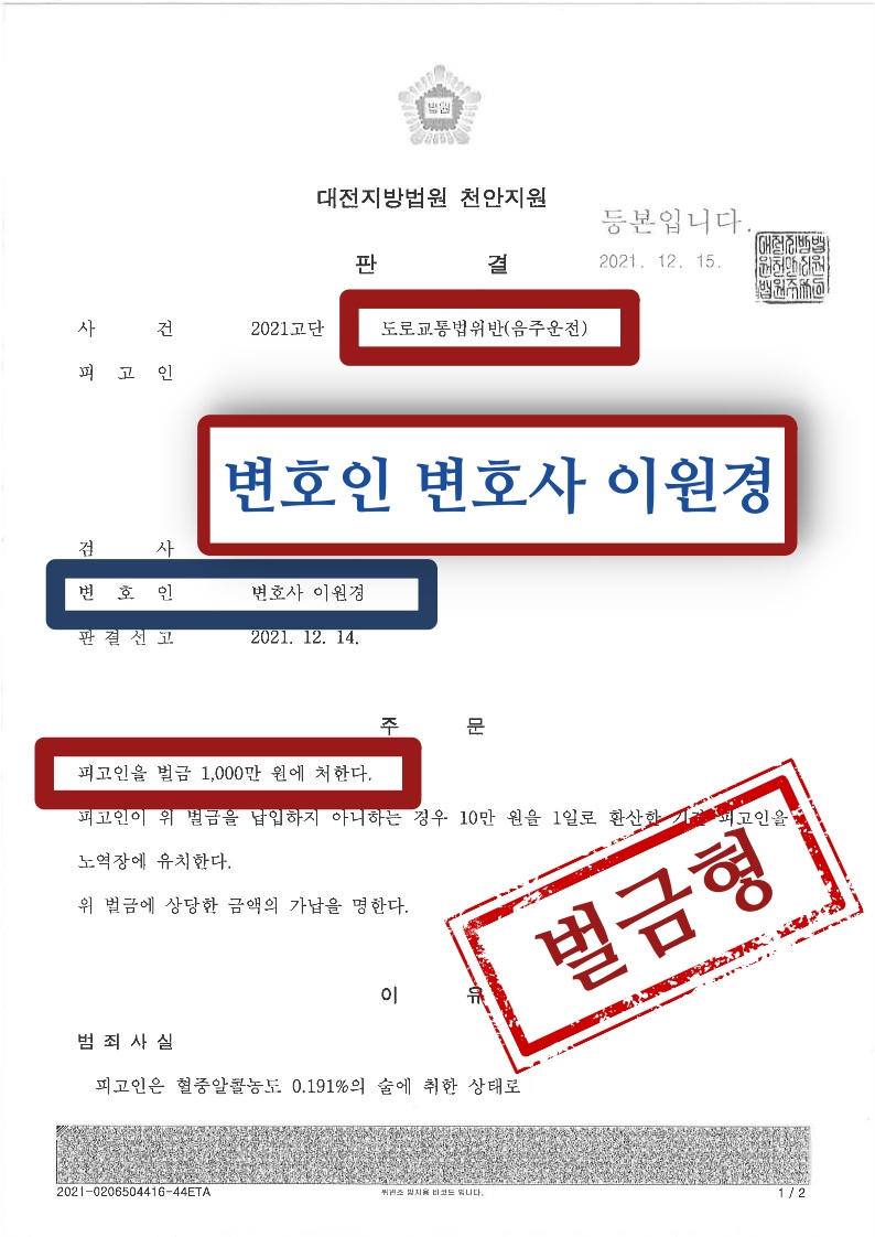 ÇǰíÀÎÀº 2014³â. °æ À½ÁÖ¿îÀüÀ¸·Î ¹ú±ÝÇüÀ» ¼±°í ¹Þ¾Ò°í, ÀÌÈÄ 2021. 9. °æ Ç÷Áß ¾ËÄÚ¿Ã³óµµ 0.191% ¸¸Ãë»óÅ¿¡¼ ¿îÀüÀ» ÇÏ´Ù °æÂû¿¡ Àû¹ßµÇ¾î µµ·Î±³Åë¹ýÀ§¹Ý(À½ÁÖ¿îÀü)À¸·Î ºÒ±¸¼Ó ±â¼ÒµÇ¾ú½À´Ï´Ù.