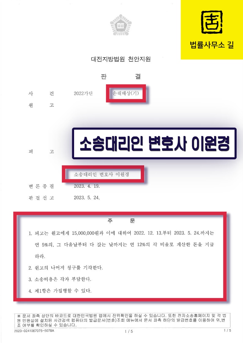 ÀÇ·ÚÀÎÀº ¿ø°í¿¡°Ô 1500¸¸¿øÀ» Áö±ÞÇ϶ó´Â ÆÇ°áÀ» ¼±°í¹Þ¾Ò½À´Ï´Ù.