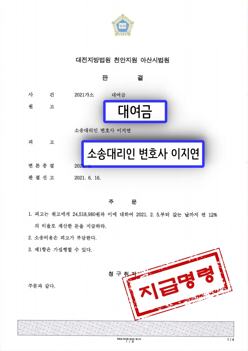 ÀÌ¿¡ ÀÌÁö¿¬ º¯È£»ç´Â ÇÇ°í°¡ ºô·Á°£ ´ë¿©±Ý ÀüºÎ¸¦ û±¸ÃëÁö·Î ÇÏ¿© ¼Ò¼ÛÀ» Á¦±âÇÏ¿´°í Çǰí´Â ¿ø°íÀÇ Ã»±¸ ±Ý¾× Áß ÀϺΰ¡ °°ÀÌ »ç¿ëÇÑ ±Ý¿øÀ̶ó°í ÁÖÀåÇÏ¿´À¸³ª À̸¦ ÀÔÁõÇÏÁö ¸øÇÏ¿´½À´Ï´Ù.